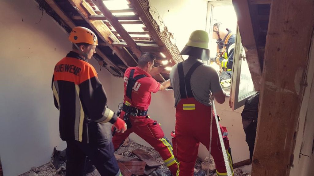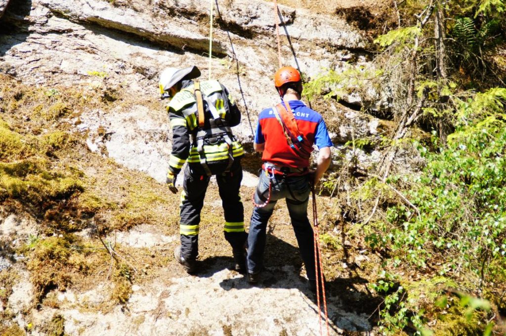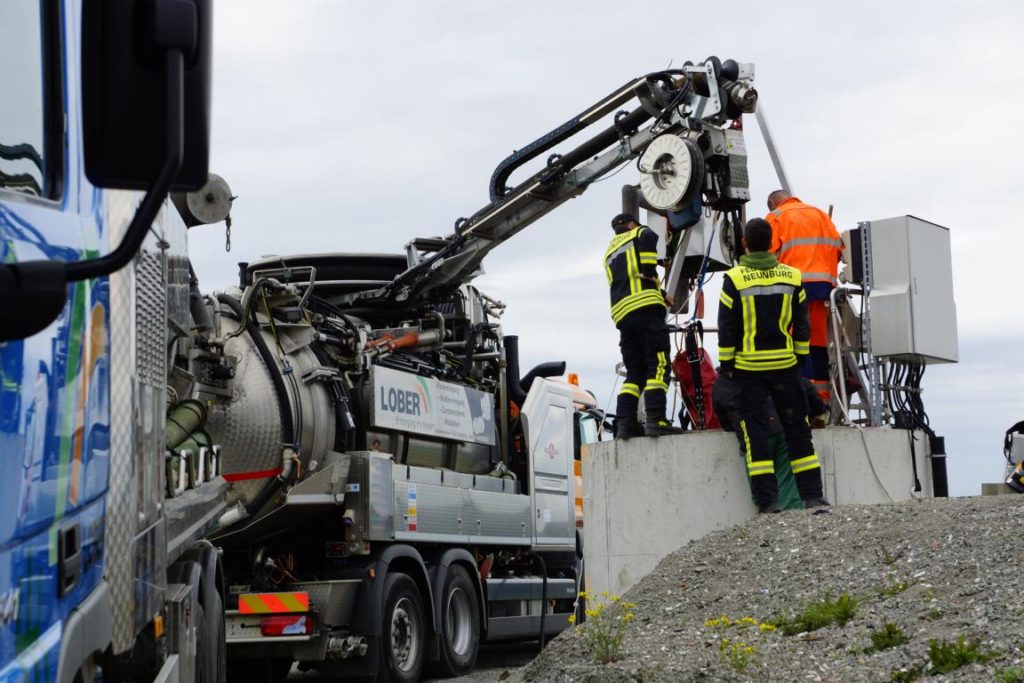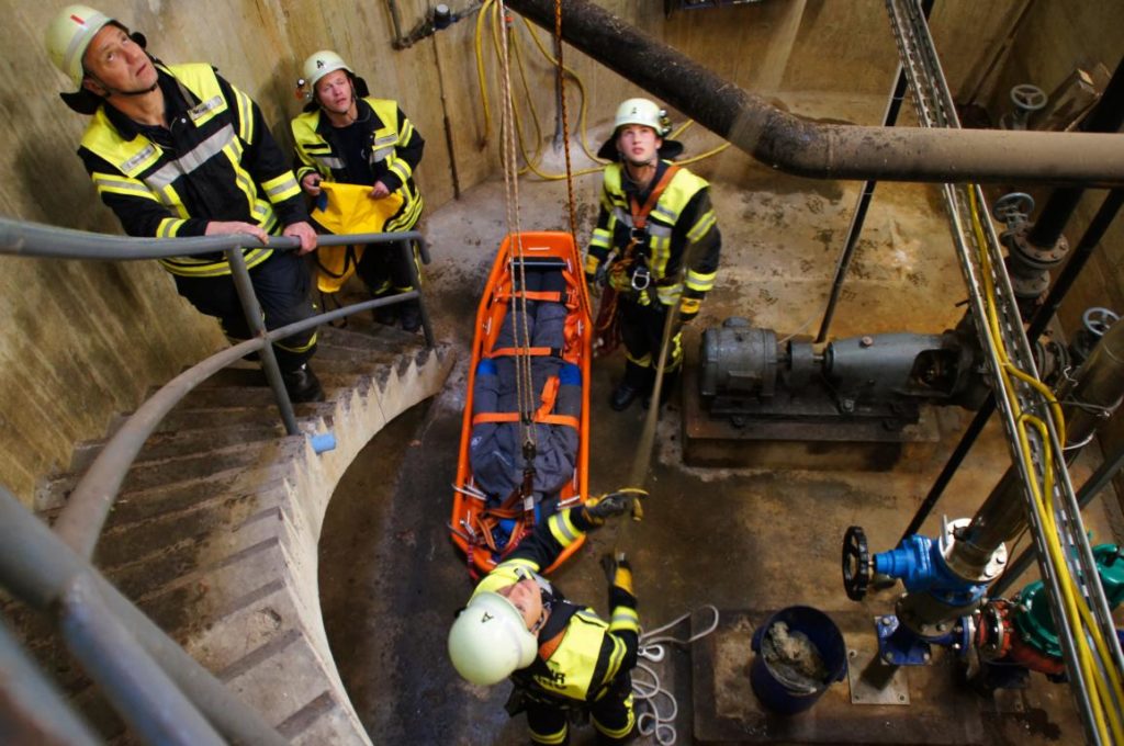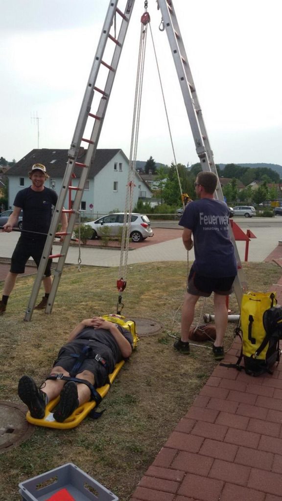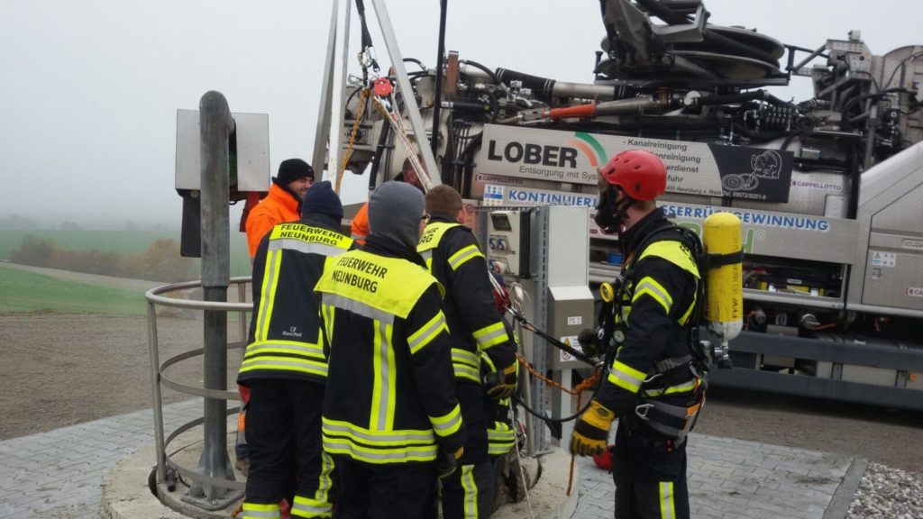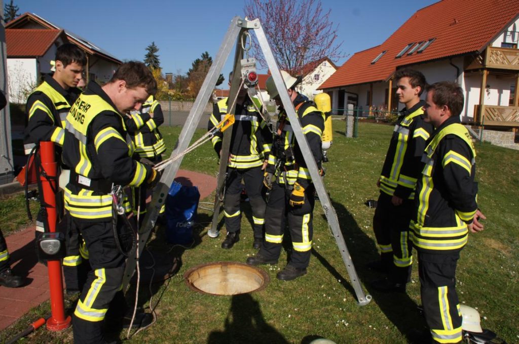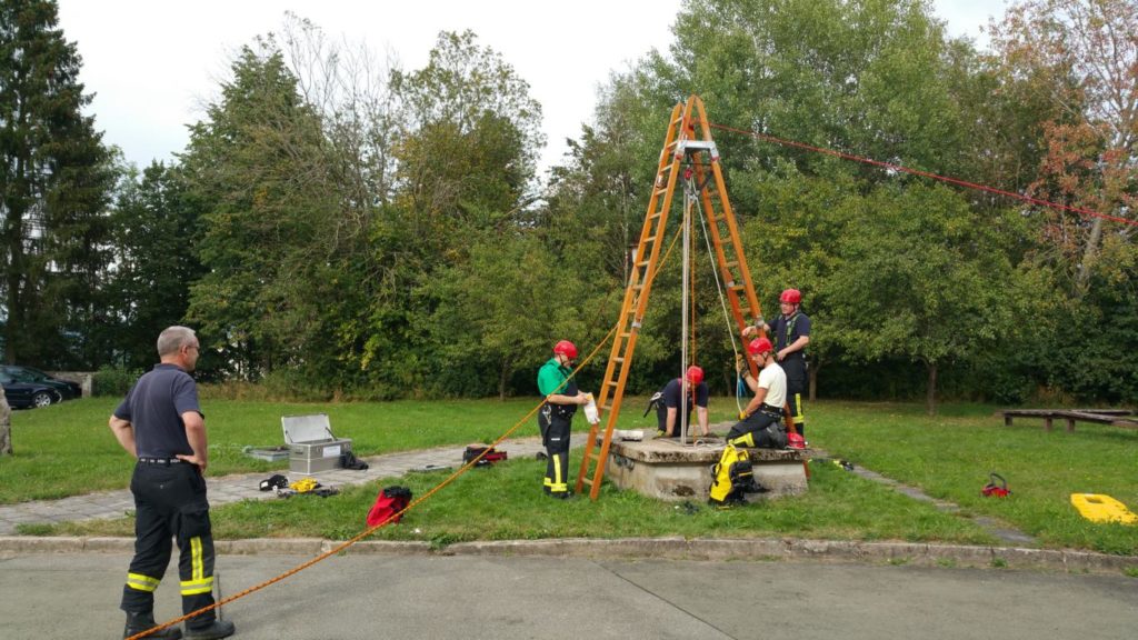 Übung: Ein – zweimal im Jahr unterstützen wir einen Neunburger Betrieb bei einer Maßnahme wo man in einen Schacht muss. Diese Maßnahme nutzen wir immer als Übung.